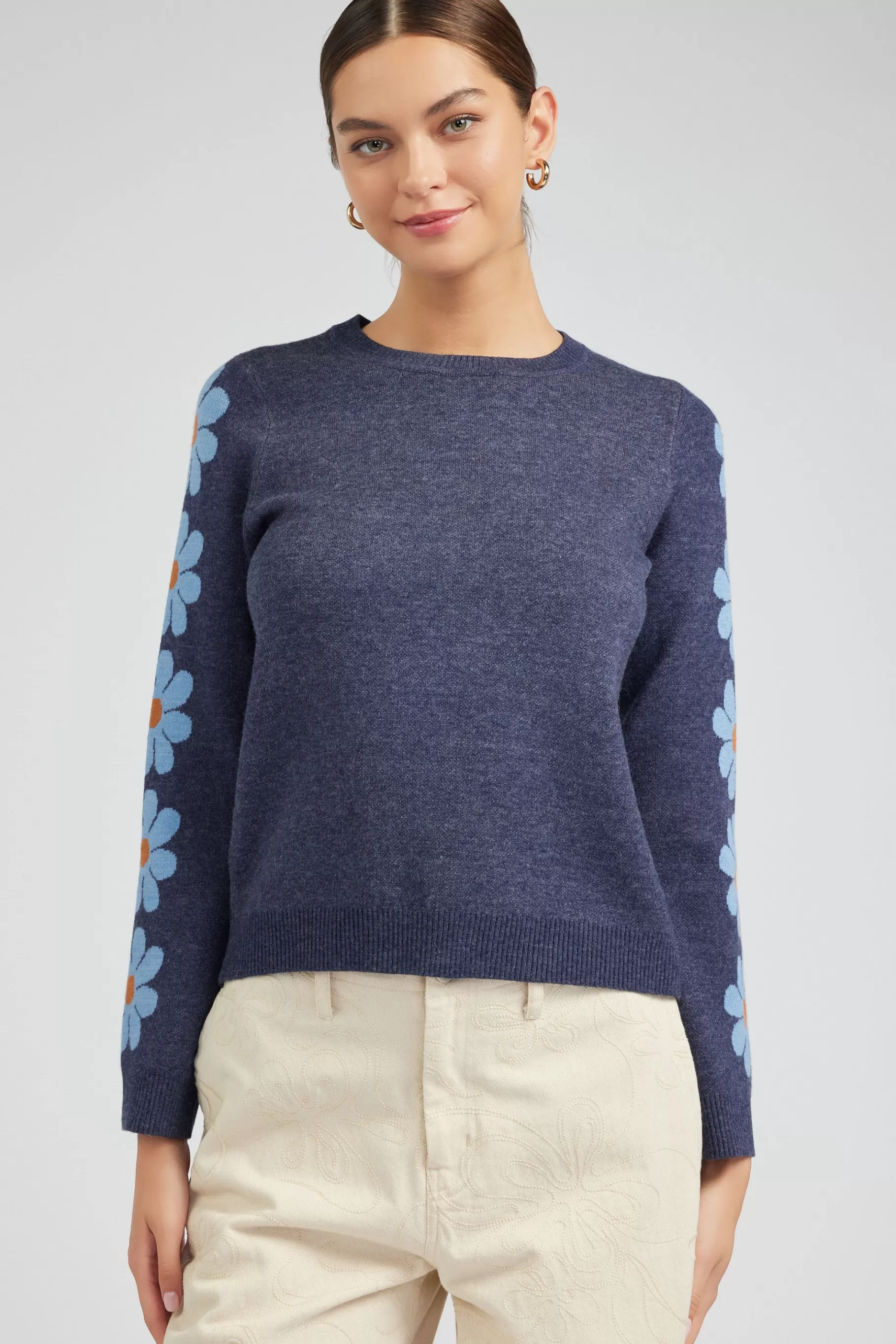 Current Air Short Sleeve Tops>Floral Border Print Blouse BLUESAND